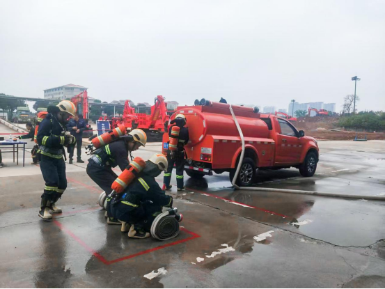 在中小型水罐消防车操作现场,参赛队员们敏捷而精确地打开车辆操控,衔接水源,调整水压,模仿对火源进行精准补救。一起,一名队员时间重视着火势改变,及时作出调整水炮视点和喷发力度,整个操作的流程行云流水。