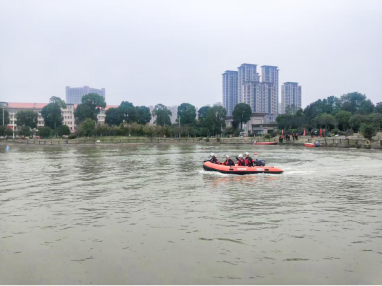 救援舟艇组合(橡皮艇)交锋区域,则是另一番现象。参赛部队驾驭着橡皮艇在模仿的杂乱水域中络绎,时而加快冲刺,时而灵敏转弯,展现出高明的水上救援技术。“陈述,发现人员落水!”情况紧急,但队员们并未慌张,他们敏捷调整船速和方向,使用橡皮艇的灵敏性稳稳地来到“落水人员”旁,敏捷将“落水人员”拉回橡皮艇上。