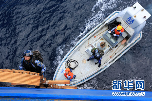 新华网千岛湖舰6月5日电(曾涛 代宗锋)6月2日上午,亚丁湾东部海域,西南风5级,浪高2到3米。海面上,一艘从中国水兵第二十批护航编队千岛湖舰动身的小艇,在波峰浪谷间奔驰。